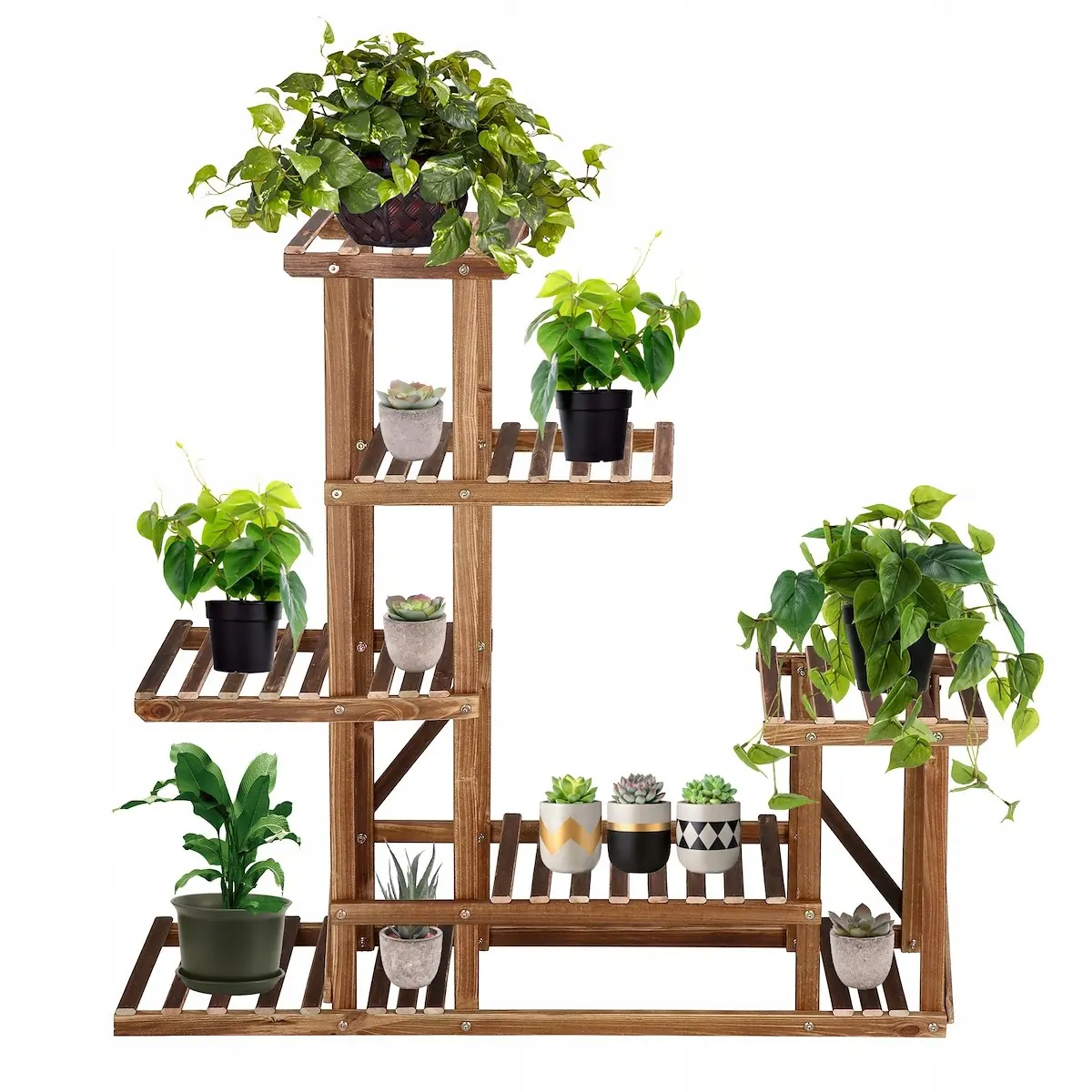 Viacposchodový stojan na kvety je mimoriadne praktickým a efektívnym riešením pre milovníkov rastlín, ktorí stále hľadajú nové nápady na vystavenie kvetov a pre tých, ktorým chýba miesto na kvetináče. Drevený stojan, do ktorého sa zmestí až 10 veľkých kvetináčov, vám umožní vyplniť predtým prázdne kúty zeleňou a maximálne využiť zastarané priestory na miestach ako: