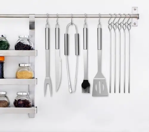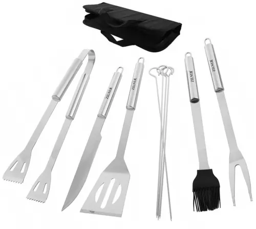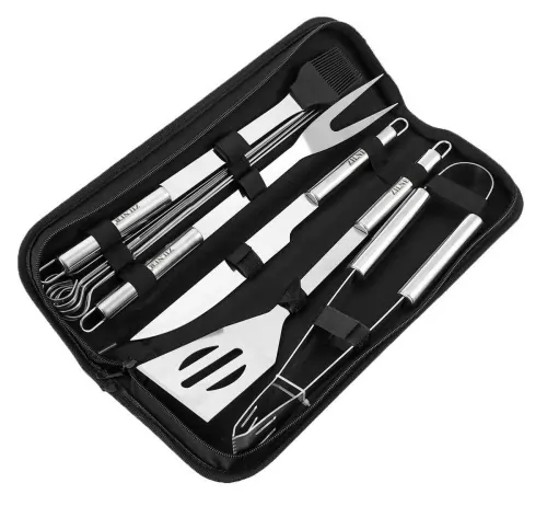 Povinná výbava počas grilovacej sezóny. Uľahčia prípravu grilovaného mäsa alebo zeleniny. Sada užitočného grilovacieho príslušenstva z nehrdzavejúcej ocele.
