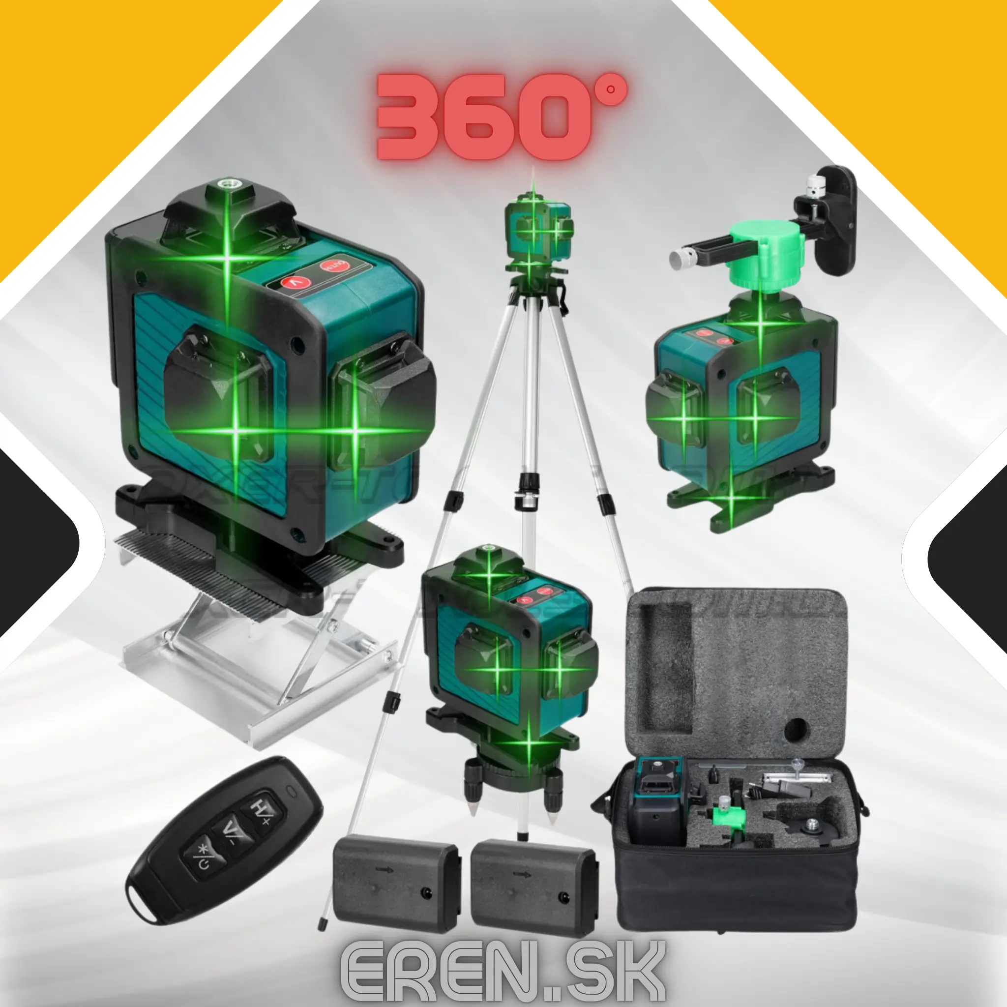 360° – Stupňov Multifunkčná 16-riadková laserová vodováha so samonivelačnou funkciou