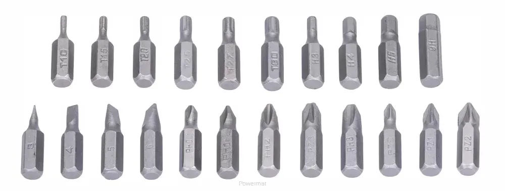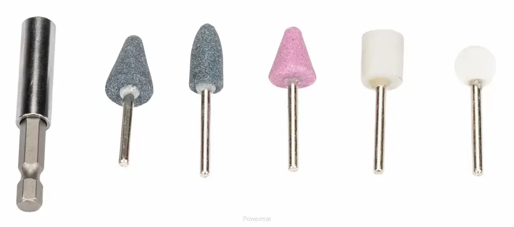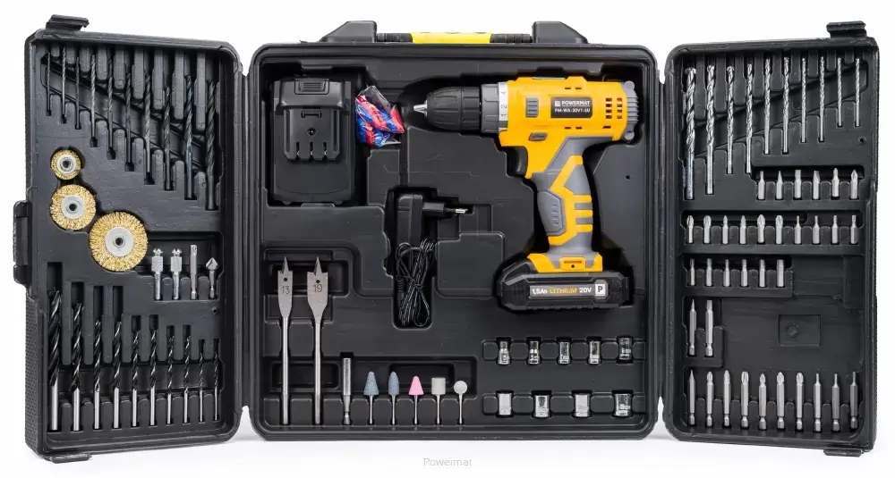Vrtáky do betónu: 10/8/2×6/2×5/2×4/2×3[mm] Vrtáky do dreva: 10/8/2×6/2×5/2×4/2×3[mm] Vrtáky HSS: 8/7/6/5/4,5/ 4 /3,5/3/2,5/2[mm] Rýľové vrtáky: 13mm/19mm Kefy do 4500 ot./min: 50mm/40mm/25mm Sada hmoždiniek: 10x 5mm/25mm, 20x 4mm/22mm Držiak nástrčky 1/4″: 4″ Sada bitov 25mm: SL: 3/4/5/6 PH: 0/1/2/3 PZ: 0/1/2/3 H: 3/4/5/6 T: 10/15/20/25 /27/ 30 Sada bitov 50mm: SL: 4/5/6 PH: 1/2/3 PZ: 1/2/3 T: 10/15/20 2x držiak kefy Zásuvky: 5/6/7/8/9 /10 /11/12/13 [mm] 1x záhlbník 1x predĺženie bitu 50mm 5x montované hroty rôznej tvrdosti