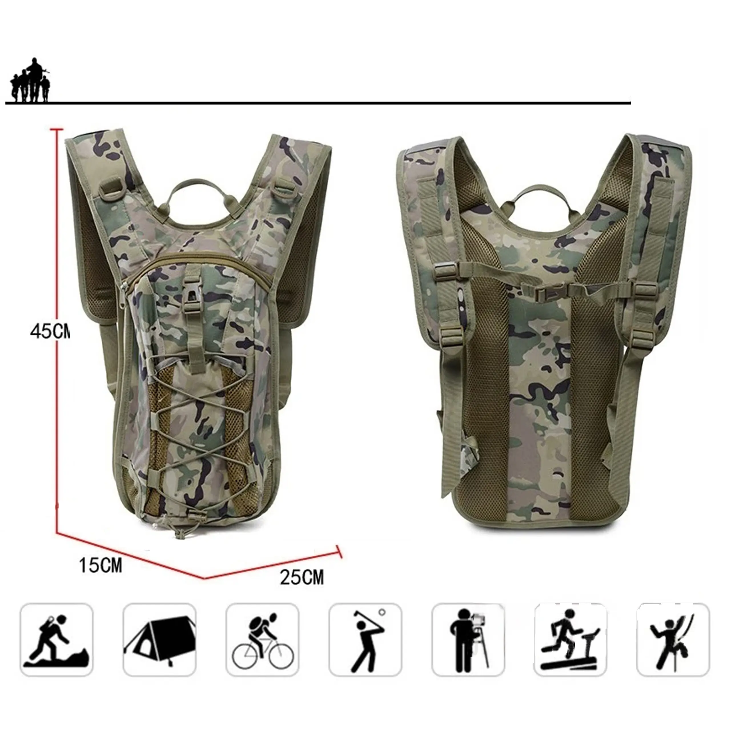 Ľahký, kompaktný hydratačný systém pozostávajúci z batohu s 3-litrovým vodným vakom , určený pre milovníkov outdoorových športov, turistiky a cyklistiky, ako aj survival a military aktivít.Vysoká kvalita materiálu zaručuje, že batoh bude ako stvorený do extrémnych podmienok.Zaujímavý vzhľad a praktický vzor.