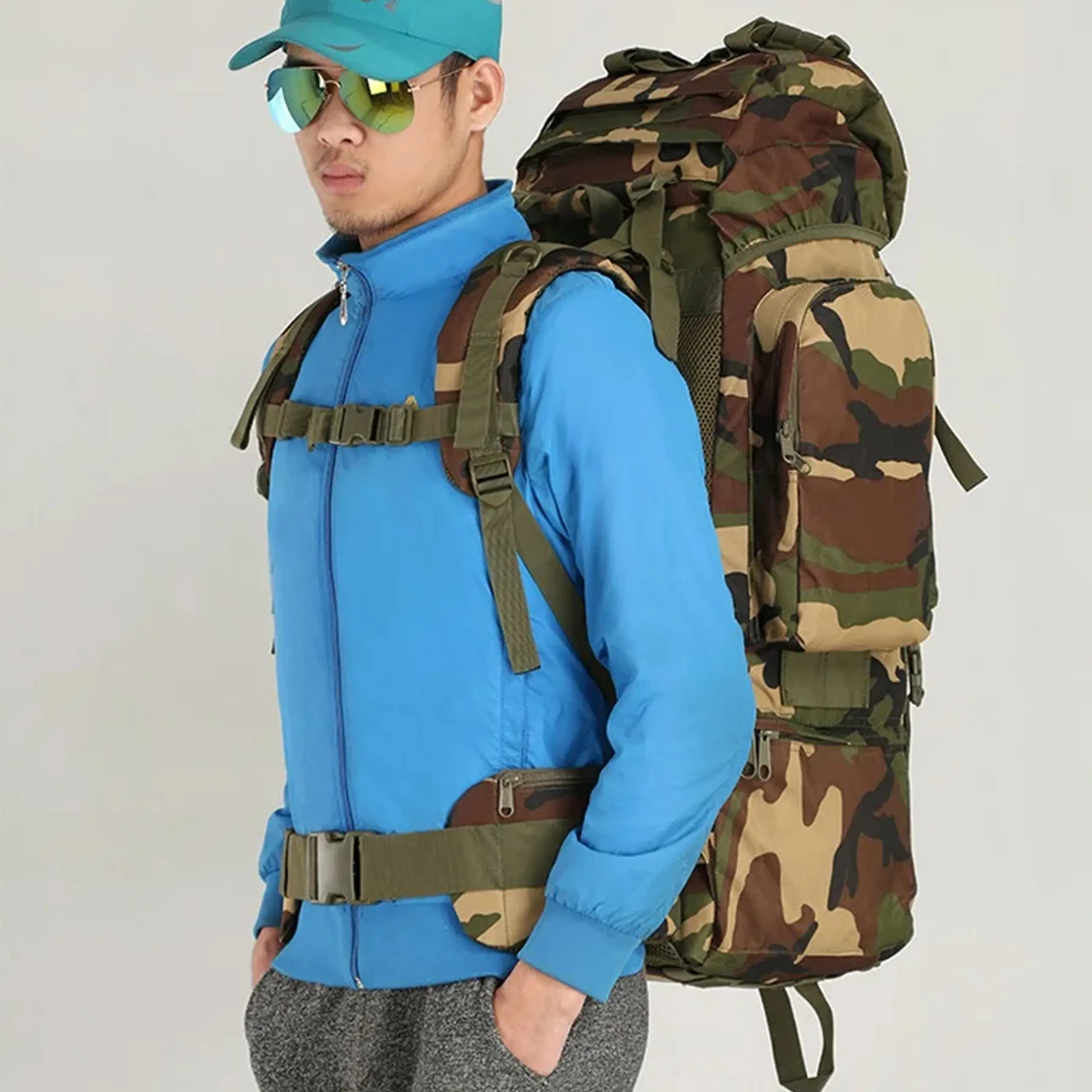 65L taktický batoh – Tento batoh je vyrobený z vysoko kvalitného 800D polyesteru. Má kapacitu 65 litrov a veľkú hlavnú priehradku s rukávom. Batoh je vybavený nastaviteľným bedrovým popruhom, sťahovacím golierom, viacerými výstužnými popruhmi, odolnou hornou rukoväťou a rámom. Na prednej strane sú dve vrecká. Na každej strane je jedno vrecko. Batoh ponúka veľký nosný priestor a je ideálny pre vojenské, poľovnícke, kempingové a turistické účely.