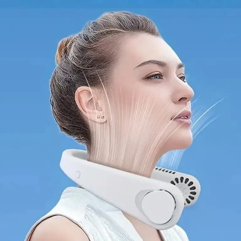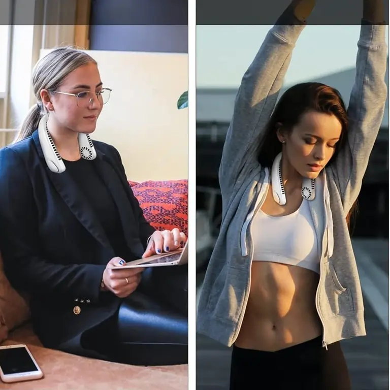 Krčný ventilátor Kinscoter vďaka svojmu jedinečnému dizajnu zaisťuje pohodlné a uvoľnené používanie. Môžete ho nosiť ako čelenku na krku, čo vám umožní voľne sa pohybovať a zároveň cítiť osviežujúci prúd vzduchu.
