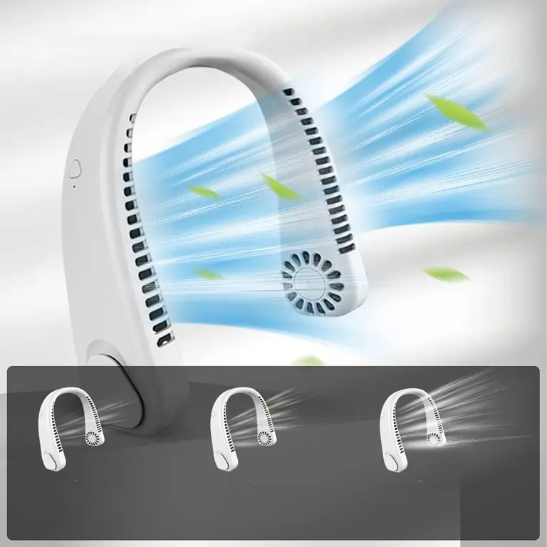 Ventilátor je vyrobený z kvalitného ABS a silikónu, je extrémne ľahký a pohodlne sa nosí. Nezaťažuje krk a ergonomický tvar zaisťuje pohodlie aj pri dlhodobom používaní.