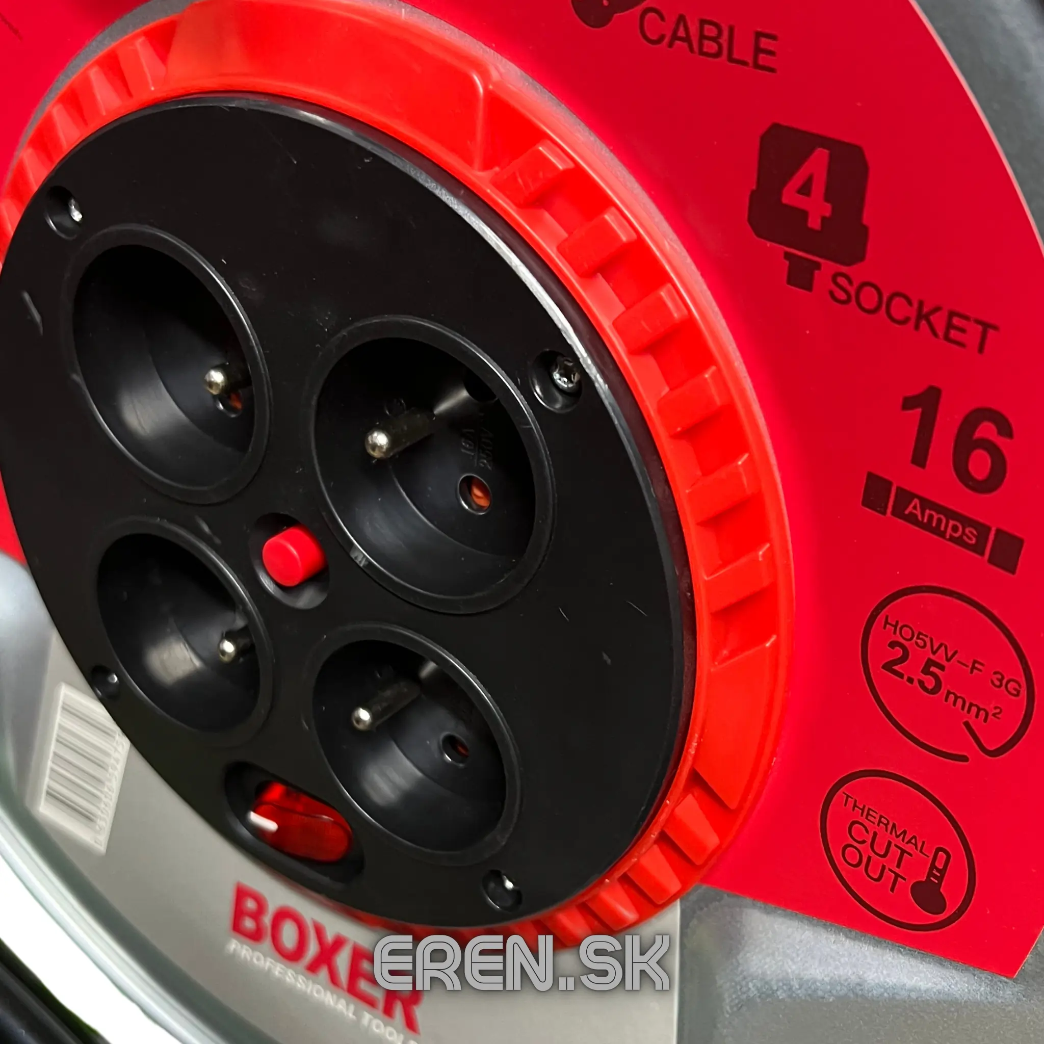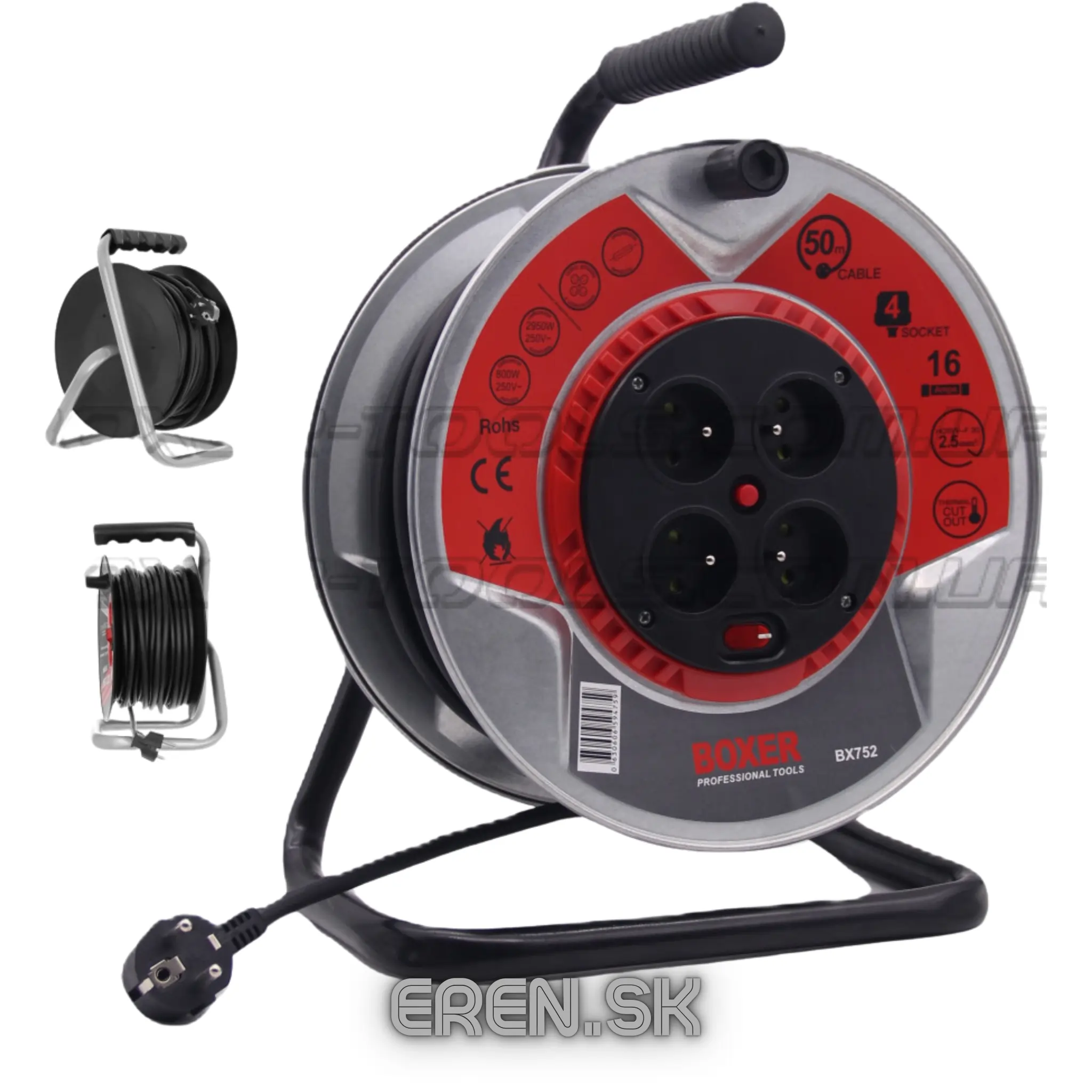 Predlžovaci záhradný kabel na bubne 4 zásuvkový 50m 3×2,5mm 220v, 2950w, BX-752